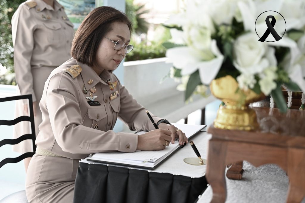 ลงนามถวายความอาลัย และถวายสักการะหน้าพระฉายาลักษณ์ สมเด็จพระนางเจ้าสิริกิติ์ พระบรมราชินีนาถ พระบรมราชชนนีพันปีหลวง